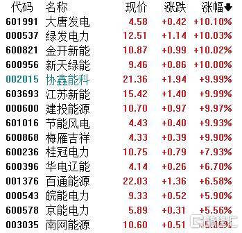 电力股强势,大(da)唐(tang)发电、绿发电力、金开新能、新天(tian)绿能、协鑫能科、江苏新能、建投能源等多股涨停。
